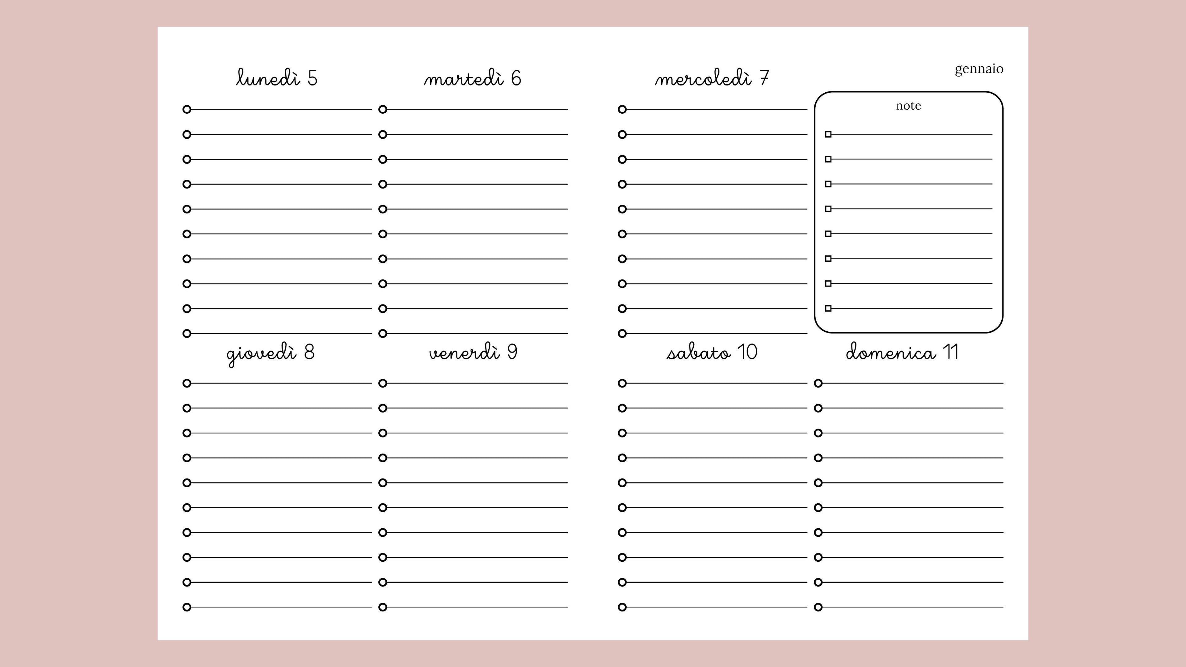 Col suo disegno interno essenziale e versatile, l'agenda tascabile perpetua è perfetta per chi ha il dono della sintesi - o desidera allenarlo. Il layout verticale - con gli orari stampati in grigio molto chiaro per poterli ignorare a piacere - aiuta a distribuire le attività senza rigidità, ma con ordine e semplicità.