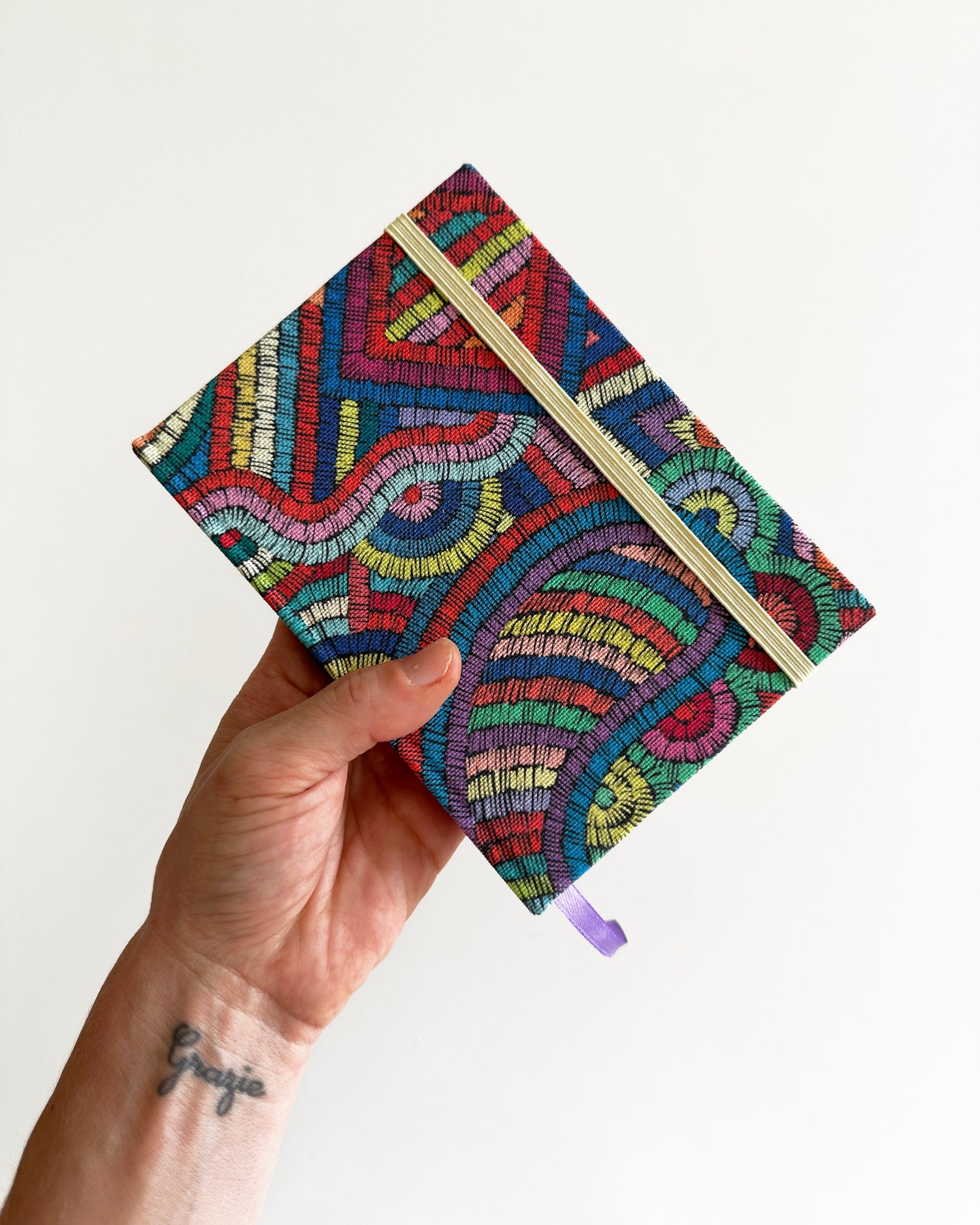Agenda tascabile perpetua A6, fiori ricamati su jeans