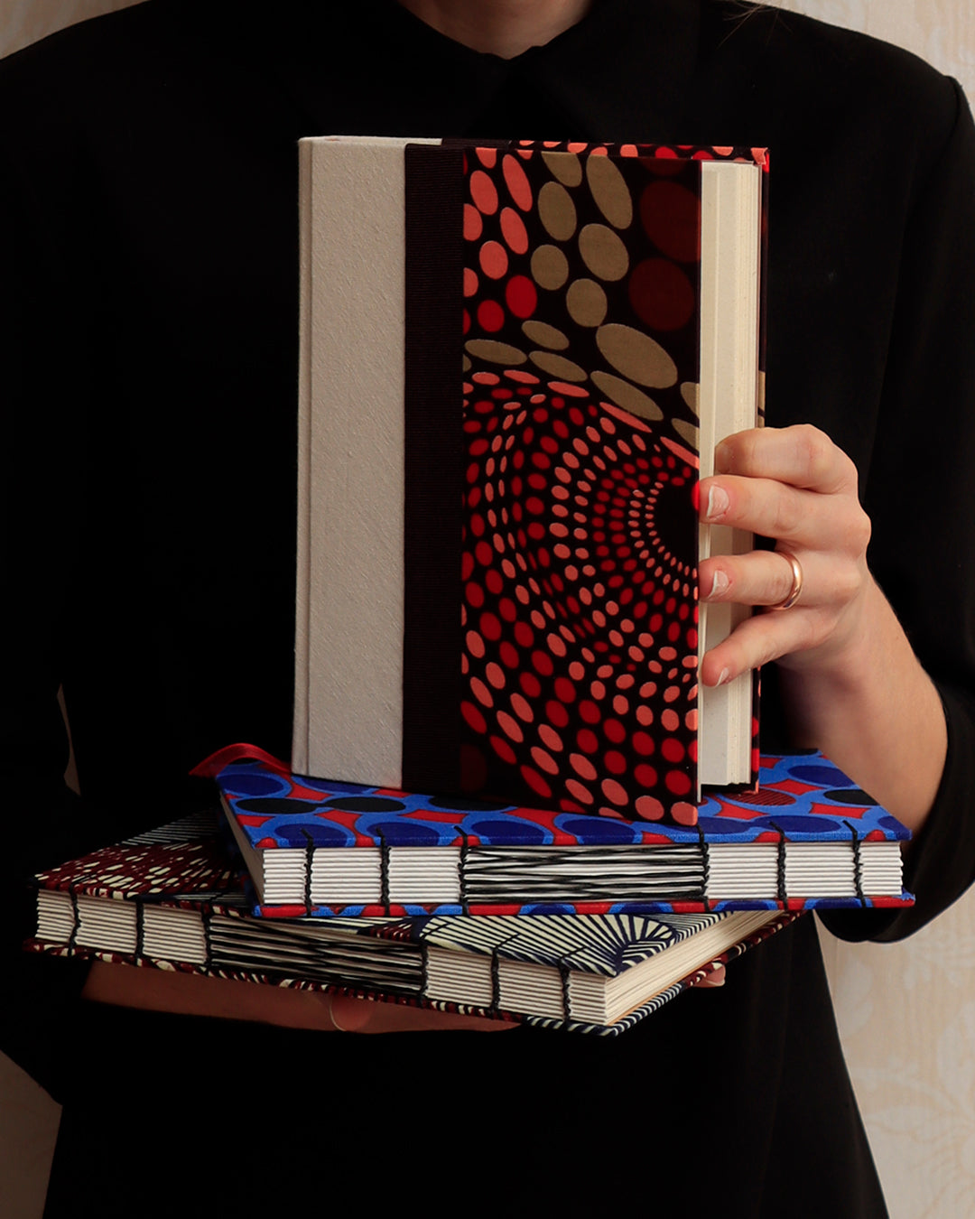 Agenda tascabile perpetua A6, wax africano arancione e blu