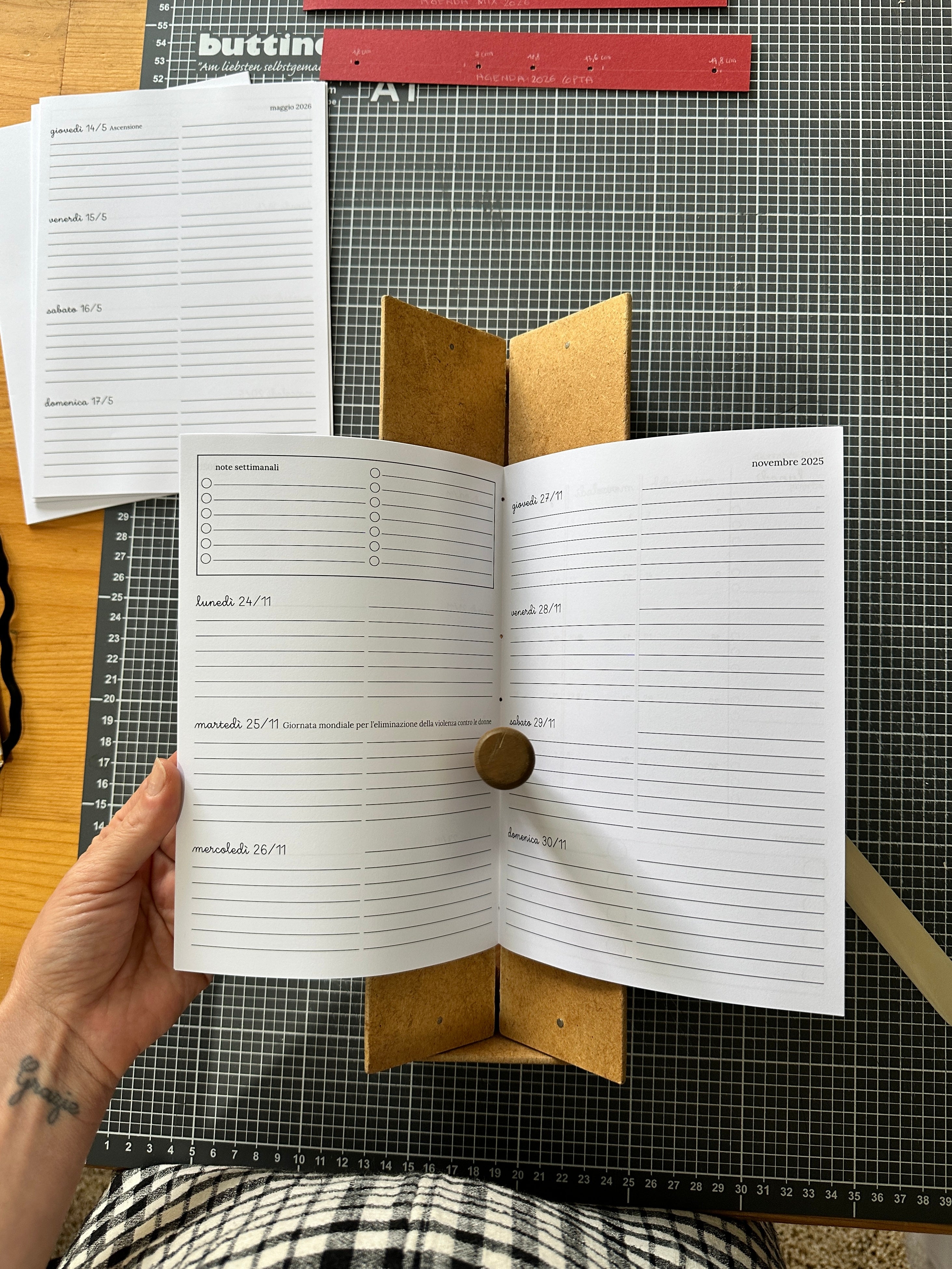 L'agenda è uno strumento che aiuta a gestire il tempo e lo spazio, sostenere i propri ritmi, progettare in anticipo, mettere in fila le idee: ci si scrive per fare chiarezza. L'agenda personale è ideale per tenere insieme appuntamenti, compiti, compleanni, giorni feriali, idee, scadenze e obiettivi in un unico posto - attenuando la paura d'aver dimenticato o trascurato un dettaglio più o meno importante. Una sensazione comune per chi lavora su più fronti come libere professioniste, artigiane e casalinghe, o per chi ha più d'una vita da gestire - proprie o altrui.