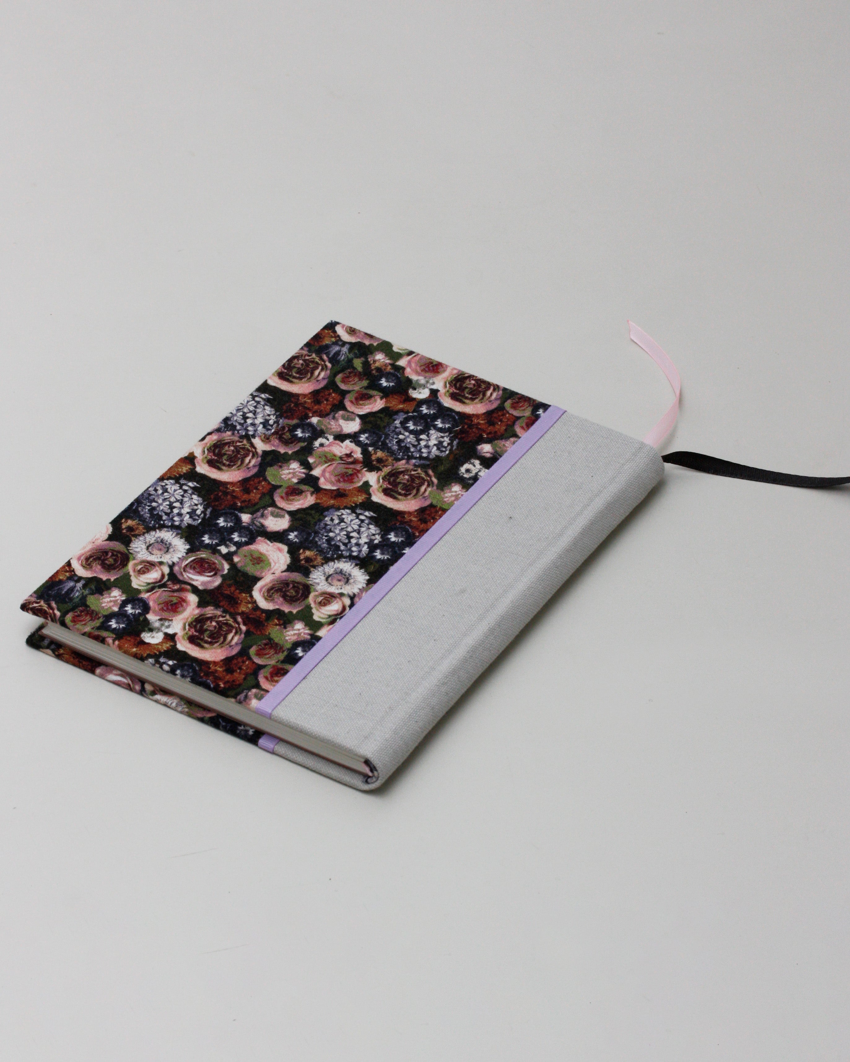 La rilegatura con dorso arrotondato ha uno stile più moderno e lineare, quasi editoriale - evoca le prestigiose legature dei libri stampati, con un'estetica sobria e compatta. La sua bellezza non è appariscente, ma si rivela nei dettagli fini. La doppia linea ad arco del dorso e del capitello, il tessuto in tinta unita al centro, i nastrini colorati in gros-grain che segnano con precisione la divisione tra piatto anteriore, dorso e piatto posteriore, creando una composizione simmetrica (fantasia – tinta unita – fantasia): sono tutti elementi che parlano a chi ama l’ordine, l’equilibrio delle forme e gli oggetti ben fatti, rifiniti e funzionali con dettagli solidi e rassicuranti. È una rilegatura dal design solida, funzionale, capace di trasmettere una sensazione di protezione e compattezza — anche quando l’agenda viaggia spesso in borsa o nello zaino.