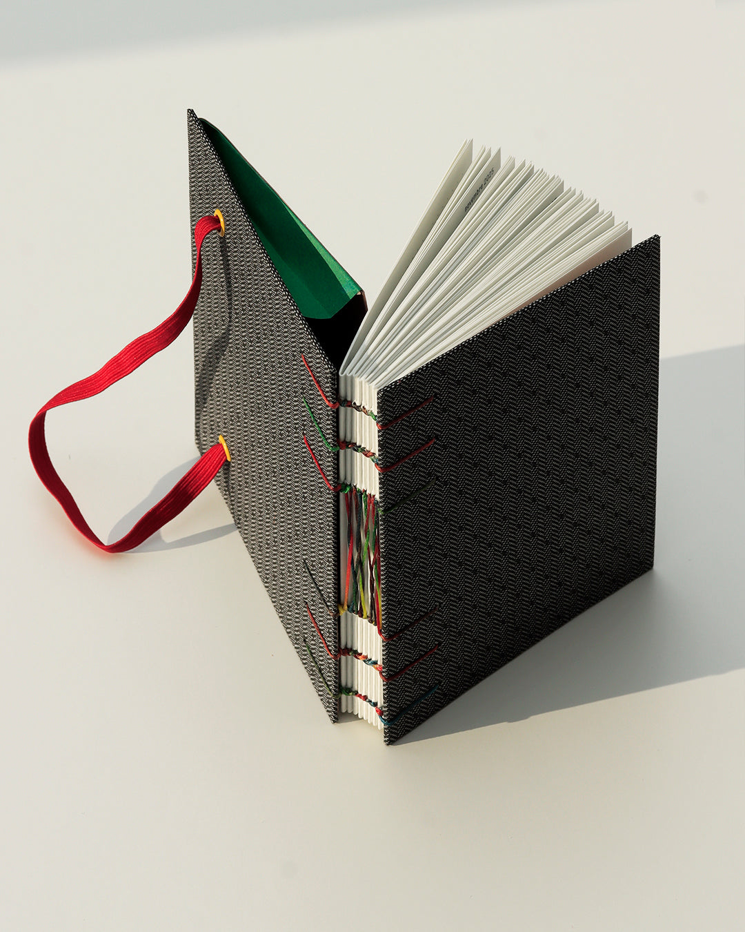 Sfogliandola in controluce, emergono giochi di trasparenza: le parole si sovrappongono come se tempo passato, presente e futuro si intrecciassero tra le fibre. Ma quando le pagine si appoggiano l’una sull’altra, il bianco intenso (eccezionalmente non grigiastro come la maggior parte delle carte riciclate!) della carta restituisce chiarezza e le scritte sul retro non interferiscono con la scrittura.