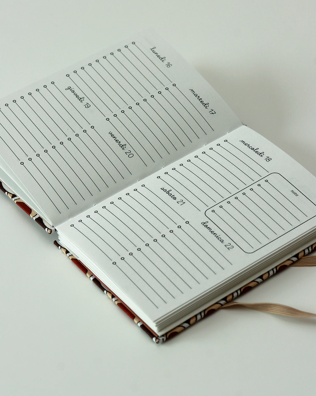 Datata da gennaio a dicembre, l’agendina è perfetta per chi lavora per obiettivi annuali, creativi, professionali o personali, e per chi desidera un’agenda bella, leggera e durevole, capace di accompagnarla per 12 mesi e di trasformarsi - giorno dopo giorno - in memoria, con le parole scritte di proprio pugno e la copertina che diventa il simbolo dell'anno vissuto, da rileggere poi come un diario compatto, essenziale e personale.