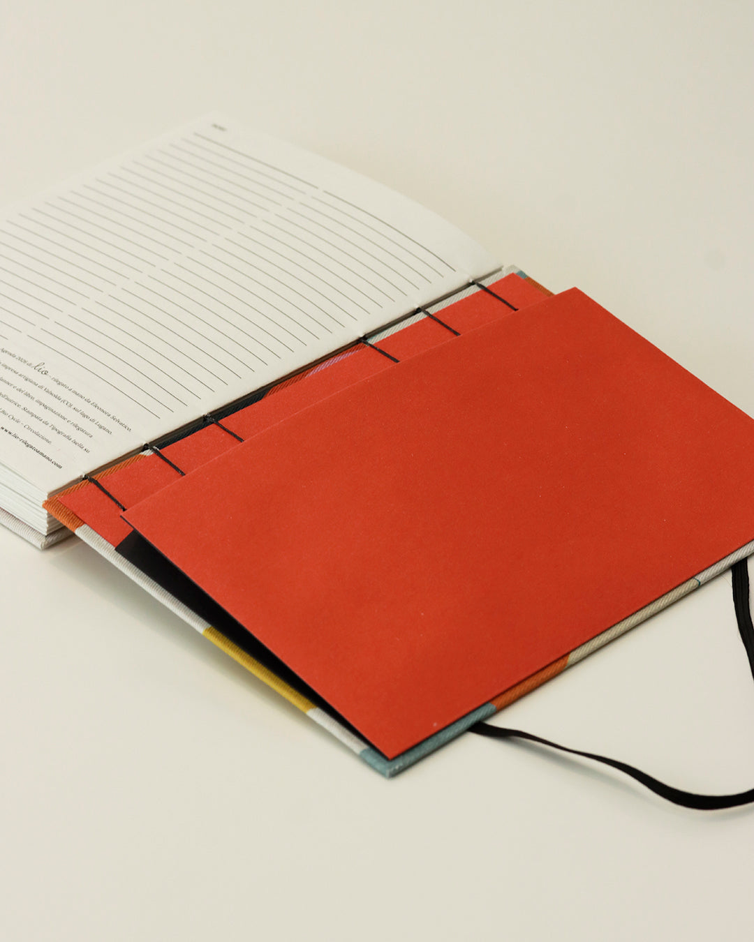 La rilegatura a mano consente l'accesso all'intera pagina e un'ottima apertura a (oltre) 180 gradi. Questo rende l'agenda molto comoda per scrivere sia appoggiate su un tavolo sia - perché no - sulle gambe: sì!, anche questo è un vantaggio della copertina rigida.