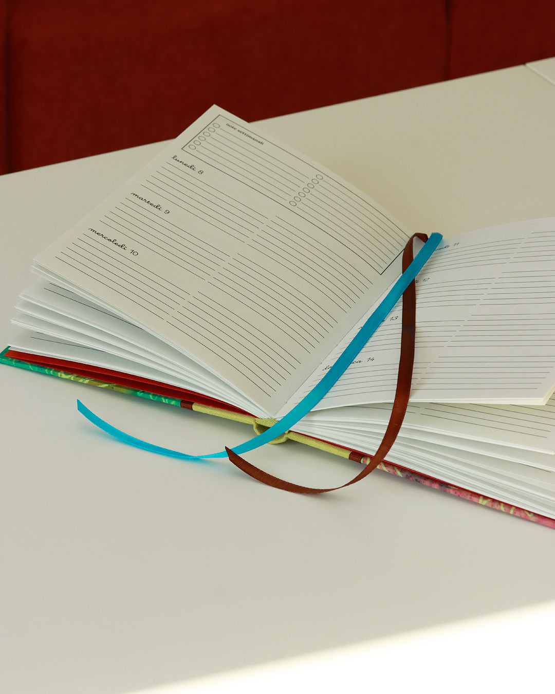 È una rilegatura dal design funzionale capace di trasmettere una sensazione di protezione e compattezza — anche quando l’agenda viaggia spesso in borsa o nello zaino.