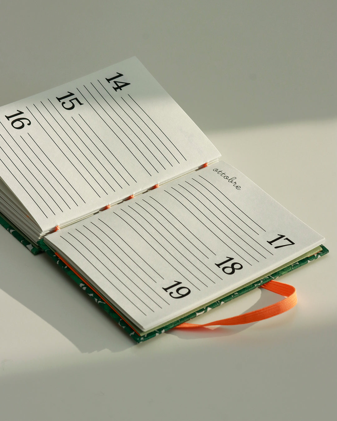 Piccola e discreta, l’agenda delle ricorrenze ha il classico formato A6 da cassetto: quella misura giusta per stare sempre a portata di mano — nella scrivania, sul comodino o persino nel capanno degli attrezzi.