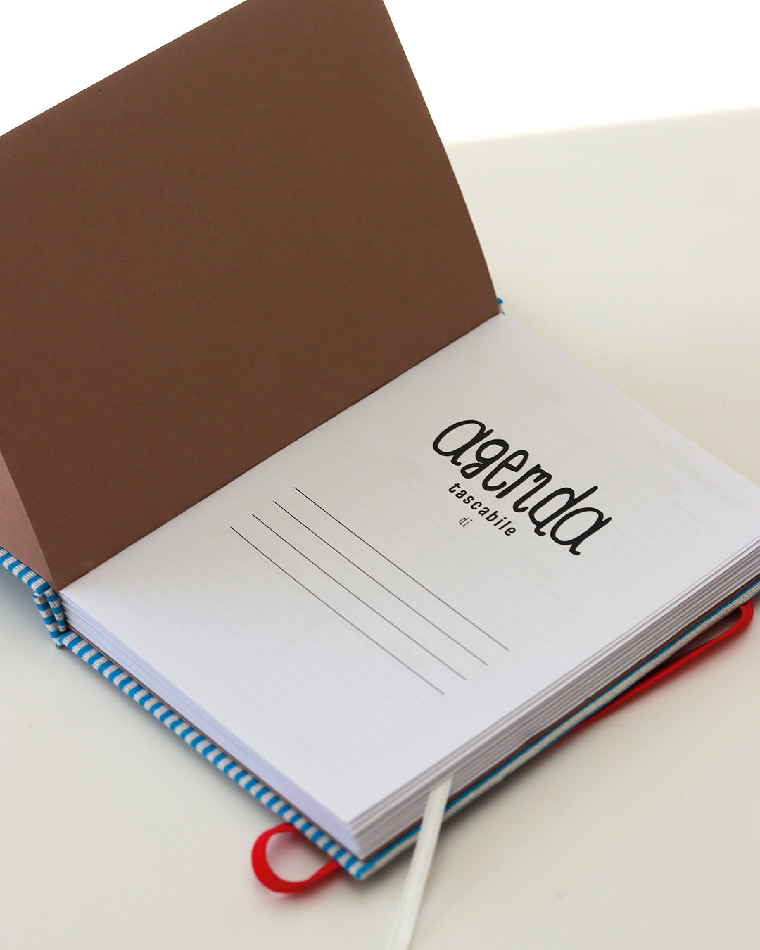 Agenda tascabile da datare a mano con rilegatura francese cartonata dotata di un elastico — con occhielli colorati — che la tiene ben chiusa, proteggendo le pagine da pieghe sgradite. Un segnalibro in raso aiuta a ritrovare facilmente la settimana in corso, per scrivere o consultare gli appuntamenti con comodità. L’accesso alle pagine è completo: il dorso quadrato (retto) non incollato alla copertina garantisce una buona apertura a 180 gradi.