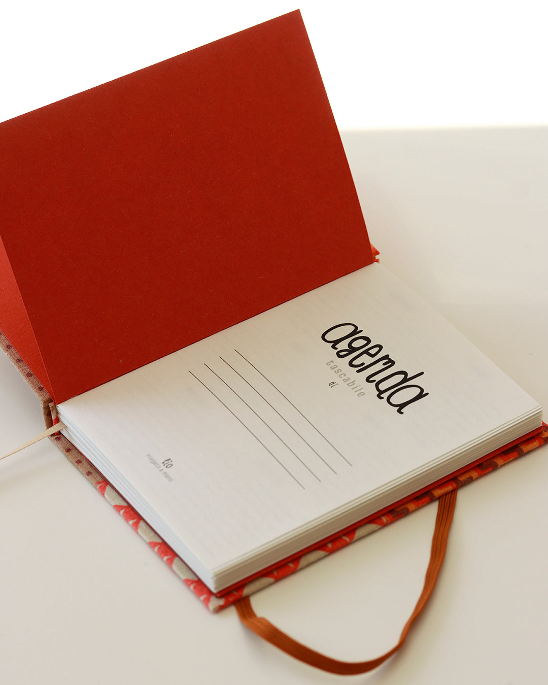 Agenda tascabile da datare a mano con rilegatura francese cartonata dotata di un elastico — con occhielli colorati — che la tiene ben chiusa, proteggendo le pagine da pieghe sgradite. Un segnalibro in raso aiuta a ritrovare facilmente la settimana in corso, per scrivere o consultare gli appuntamenti con comodità. L’accesso alle pagine è completo: il dorso quadrato (retto) non incollato alla copertina garantisce una buona apertura a 180 gradi.