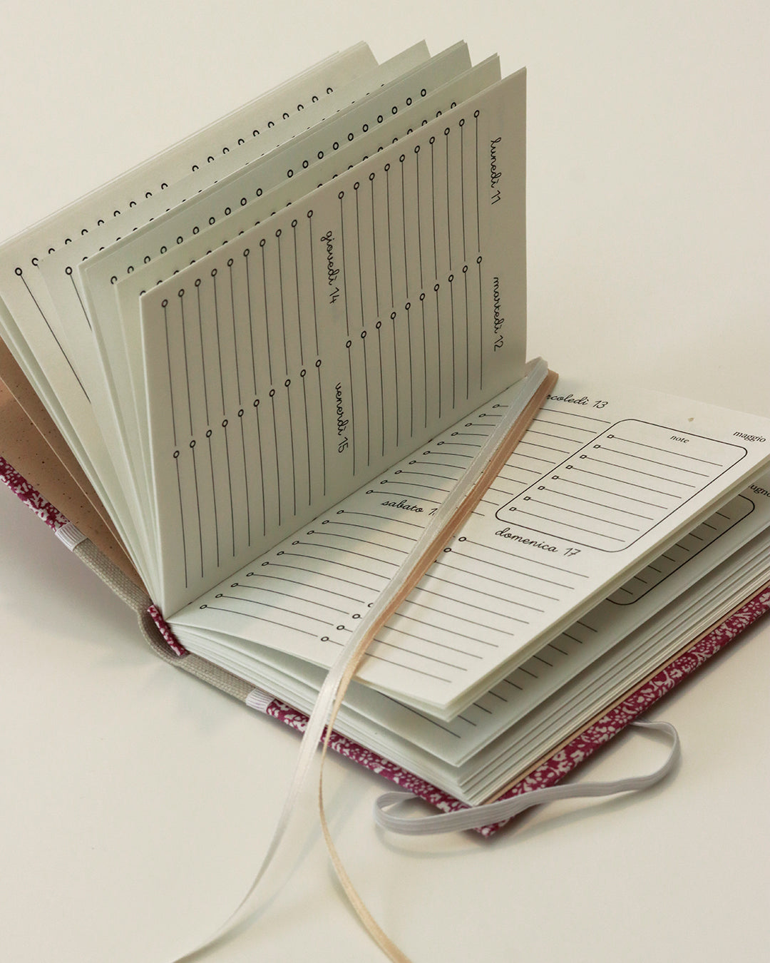 È una rilegatura dal design funzionale capace di trasmettere una sensazione di protezione e compattezza — anche quando l’agenda viaggia spesso in borsa o nello zaino.