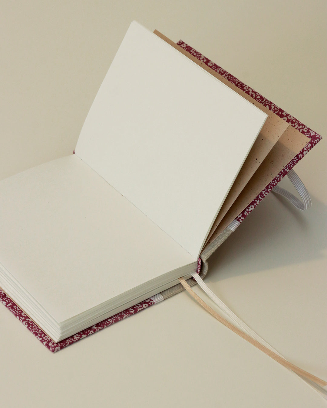 I segnalibri di raso sono bianco e beige.