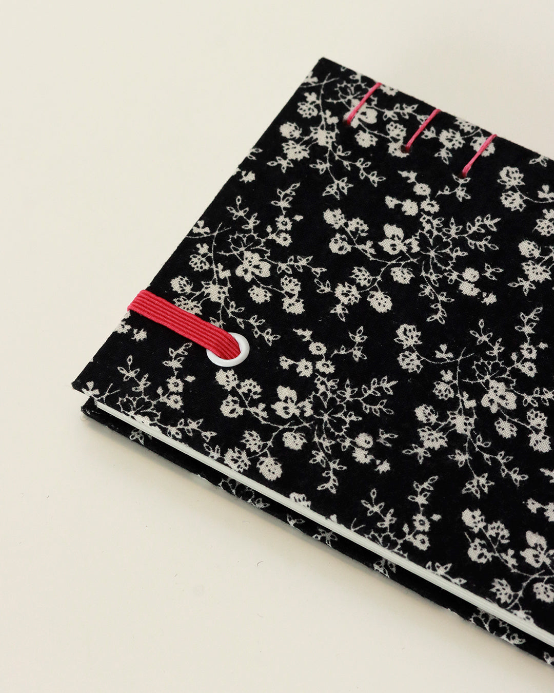 Agendina 2026 fiorellini bianchi su blu scuro (mix copta-francese con elastico)