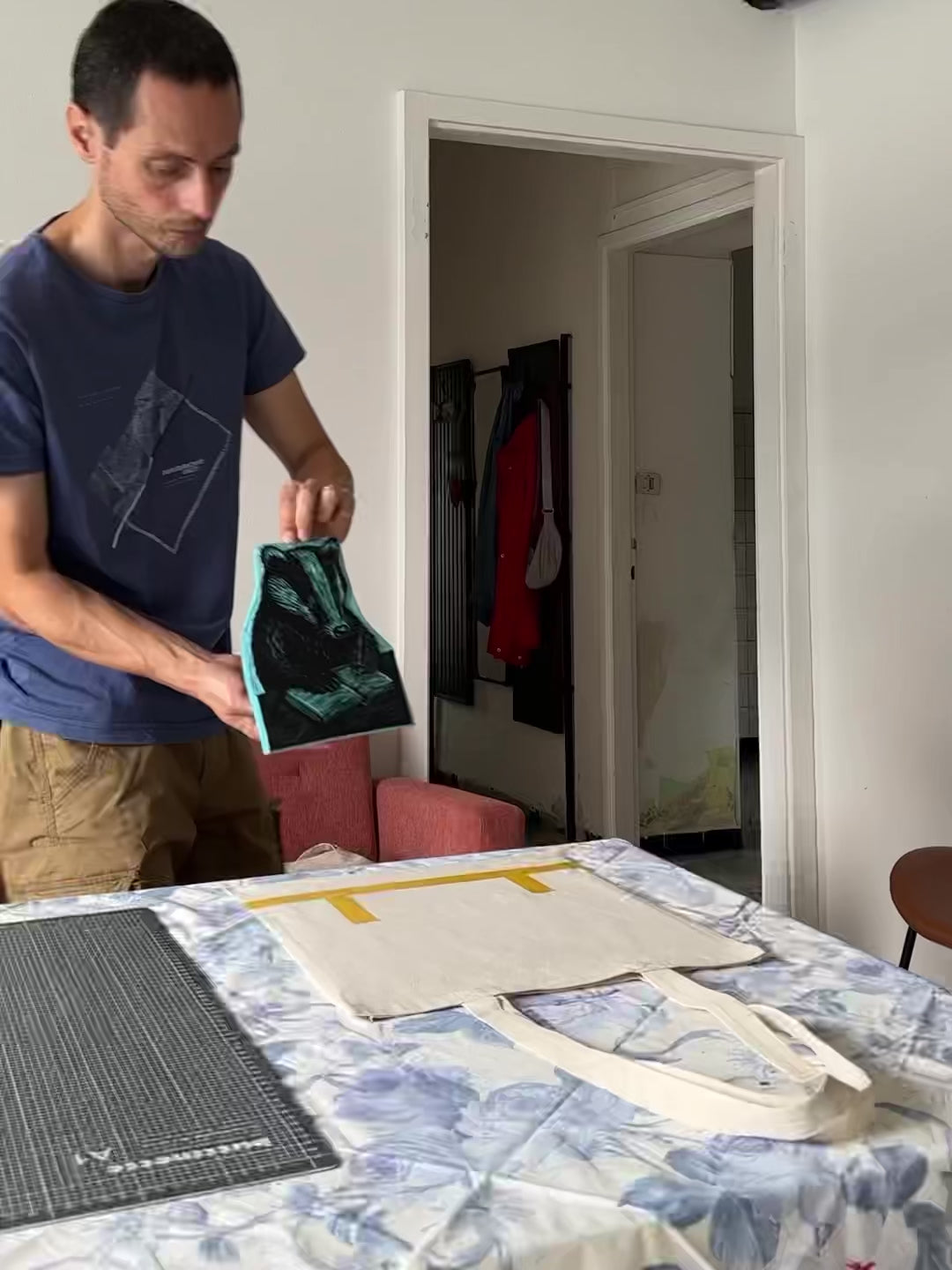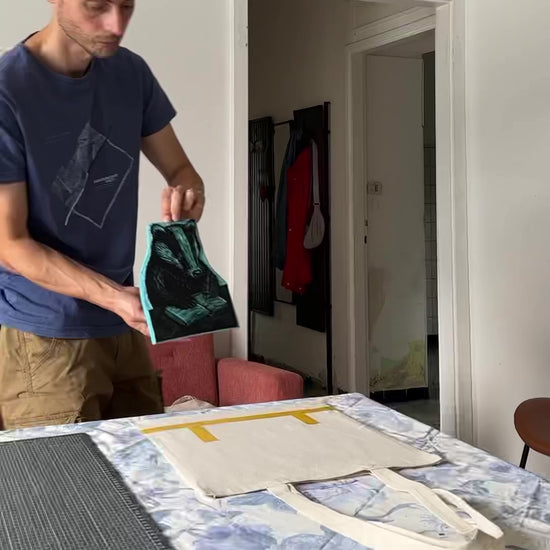 Le stampe a blocco sono realizzate con inchiostro a base d'acqua e possono essere lavate a mano o in lavatrice a basse temperature (fino a 40°C). Ti consiglio di lasciare asciugare le borse all’aria aperta e, se necessario, stirarle al rovescio per preservare la qualità della stampa.