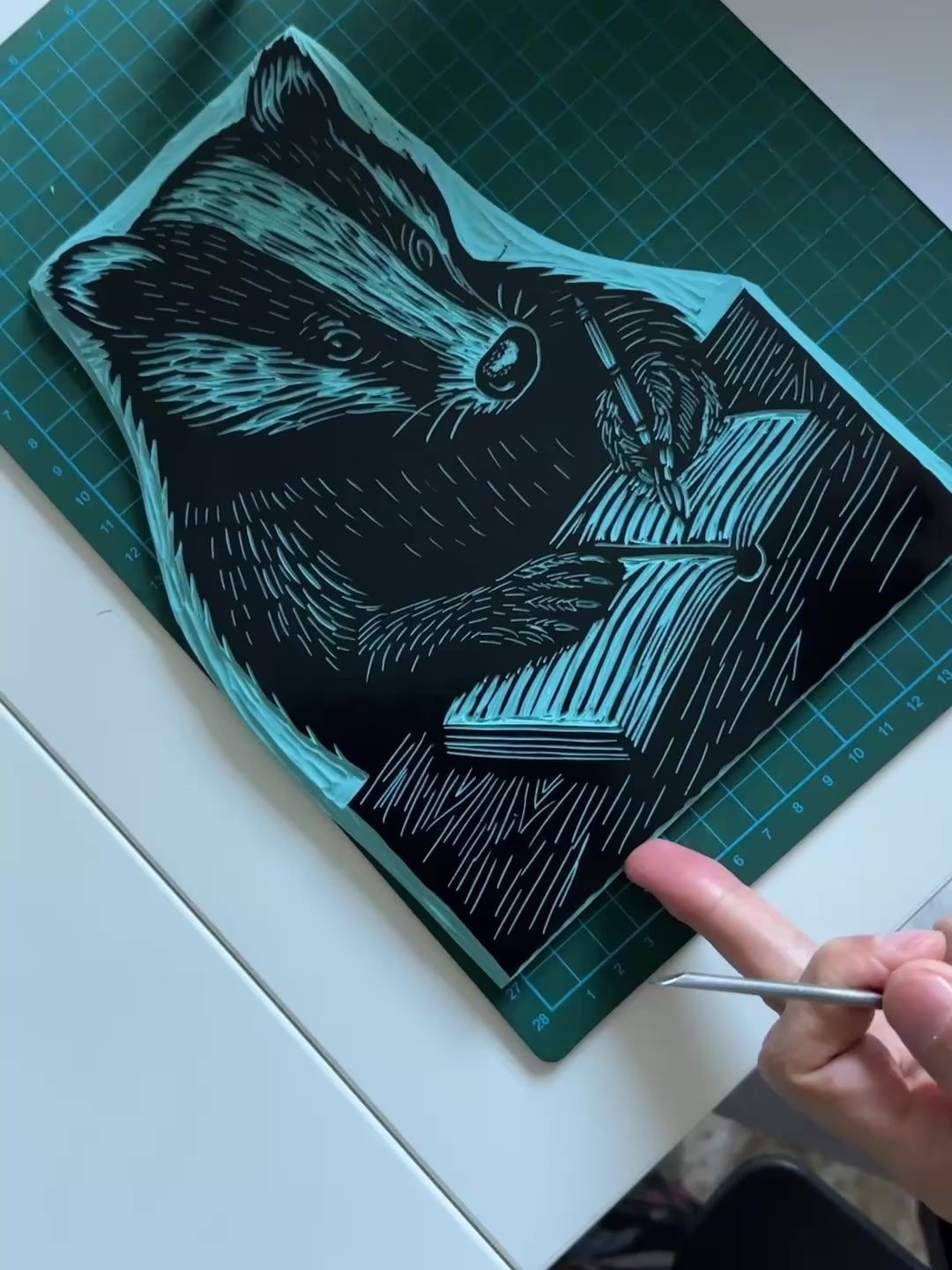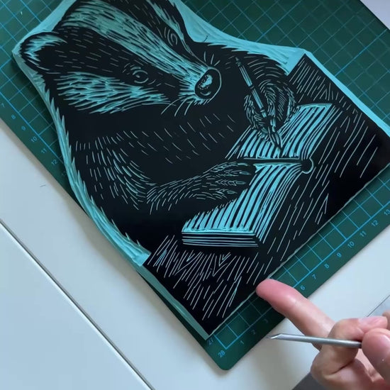 Borsa con un'adorabile stampa a blocco con un tasso che sta scrivendo un libro: un piccolo creativo del bosco che farà stringere il cuore a chi ama le favole, scrivere, prendere appunti o raccontare storie lasciandosi trasportare dalla fantasia.