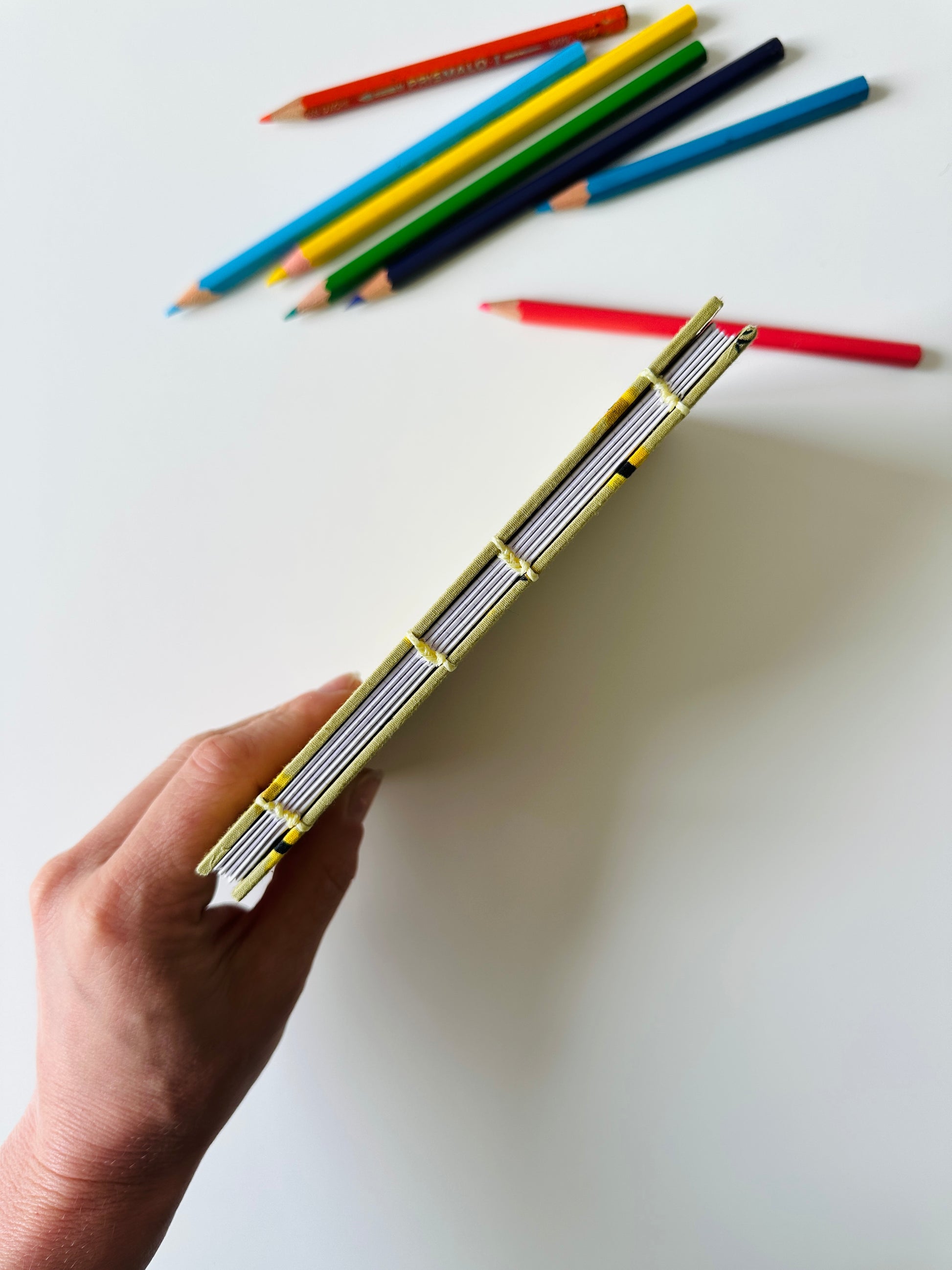 Questo quadernetto tascabile è stato cucito a mano con la rilegatura copta che conferisce al quaderno un'amplia e statica apertura di ogni pagina per poter scrivere il più comodamente possibile.