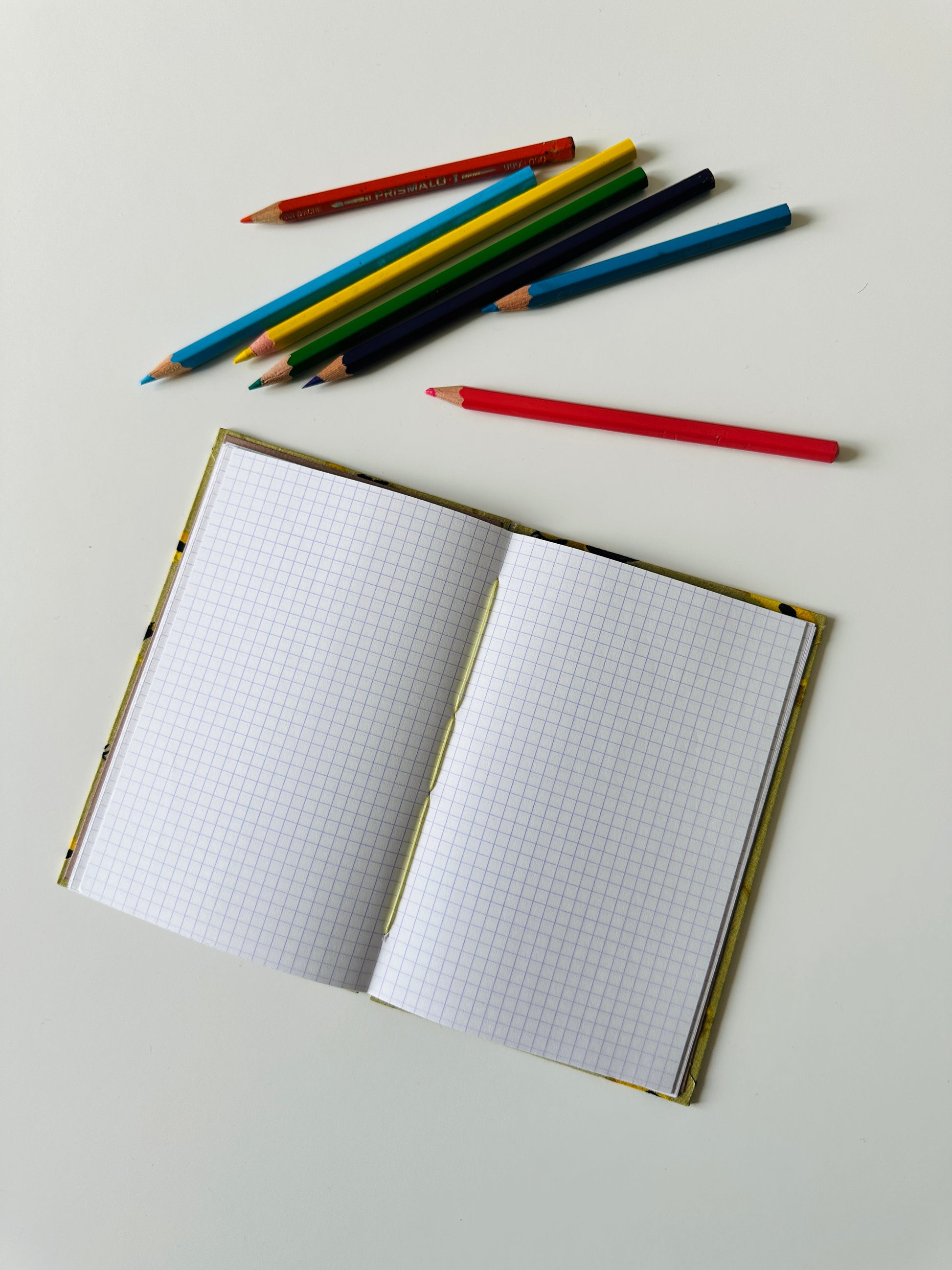 Un centinaio pagine quadrettate (quadrato 4mm, griglie blu/viola) da 70 g/m2 recuperate da quaderni scolastici sfiniti.