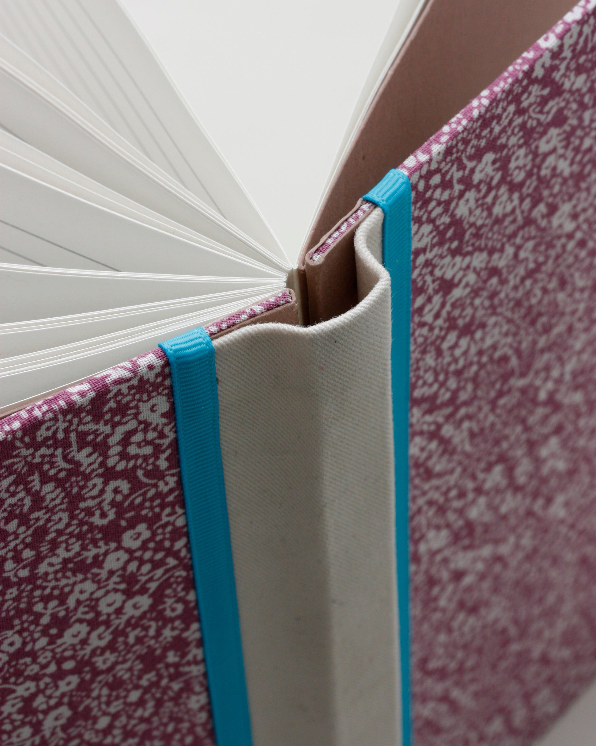 Grazie al dorso scollegato, questa rilegatura è una meraviglia per gli occhi: crea forme diverse secondo il grado d'apertura e lascia intravvedere la struttura interna, esponendo la cucitura e invitando gentilmente alla propria introspezione. Aprirsi mentre ci si guarda all’interno, o viceversa: non è forse la promessa della scrittura personale?