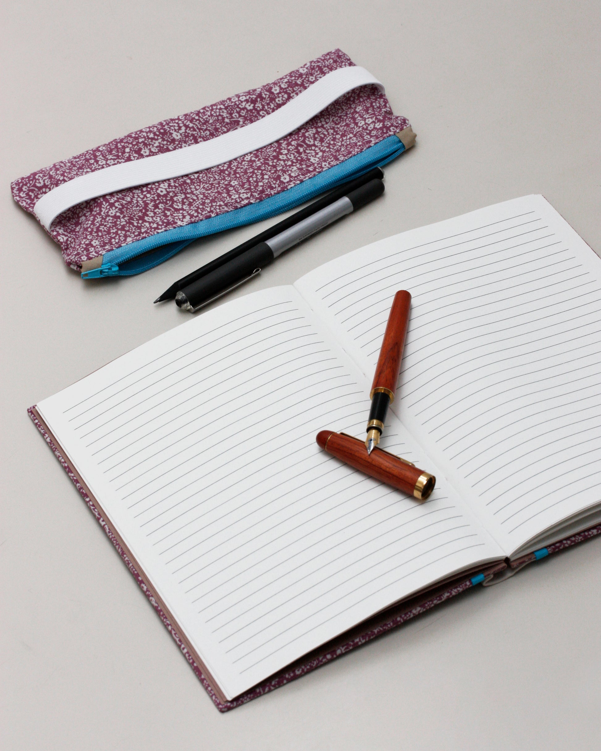 In coordinato l’astuccio con elastico da avvolgere al primo piatto di copertina per avere sempre con sé le penne (stilografiche o roller) e matite preferite ben supportate dalla carta ecologica.