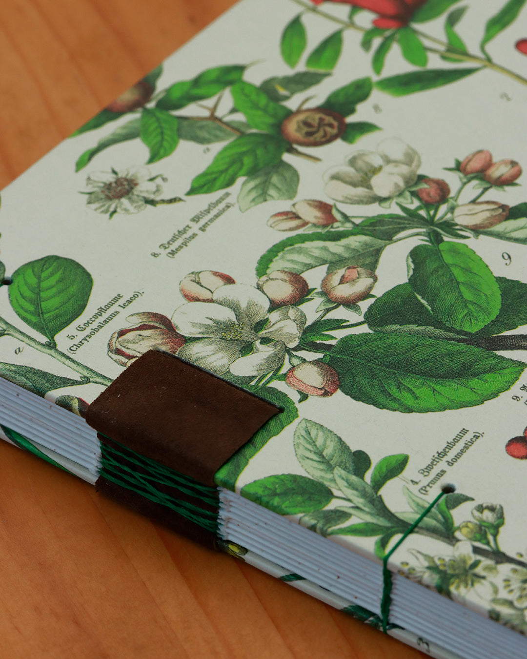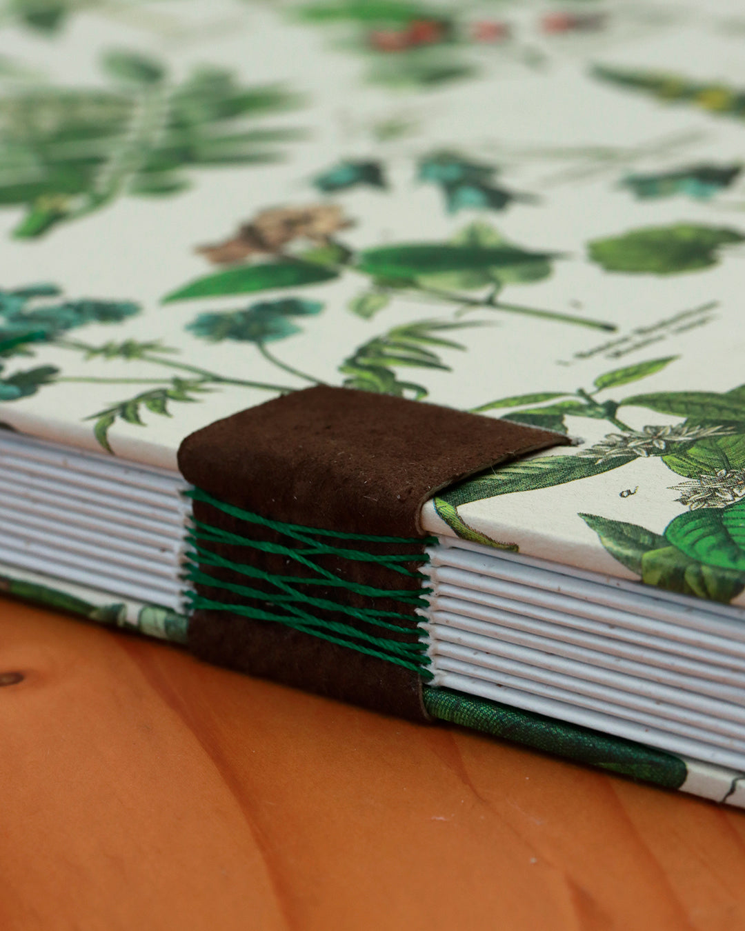 Un po’ come fanno le illustrazioni botaniche dal carattere vintage in copertina, questa antica tecnica di rilegatura invita a osservare i dettagli della struttura del libro con pazienza come per esempio i fascicoletti annodati uno sopra l'altro con del filo resistente.