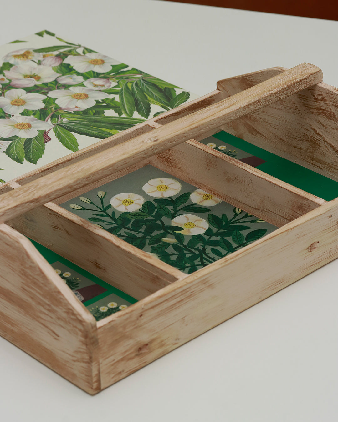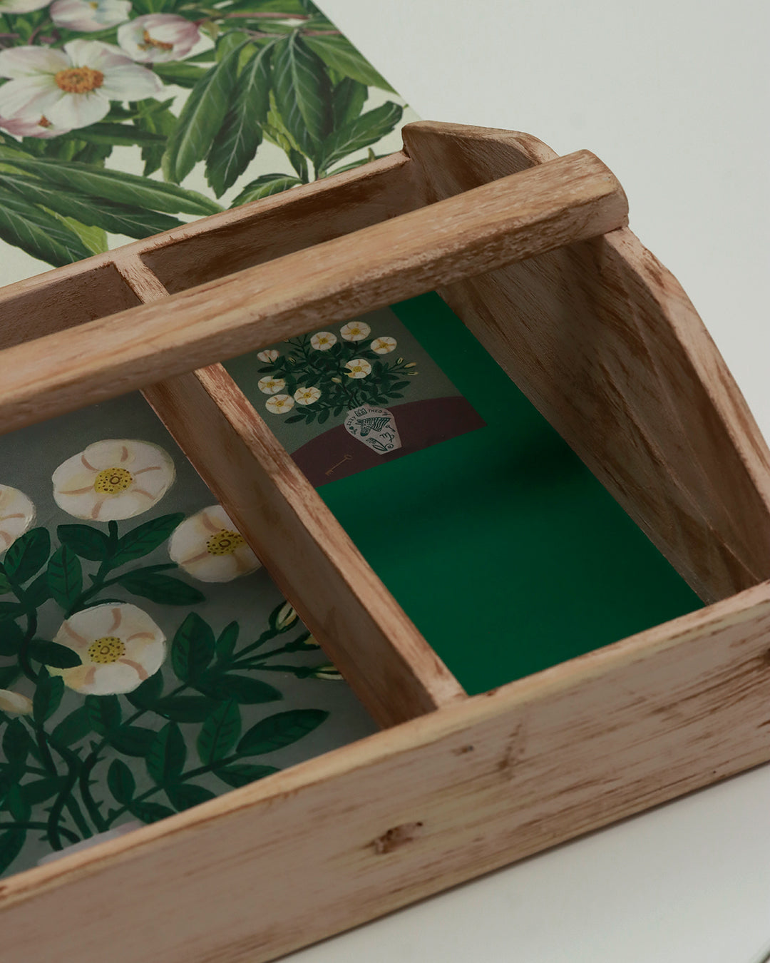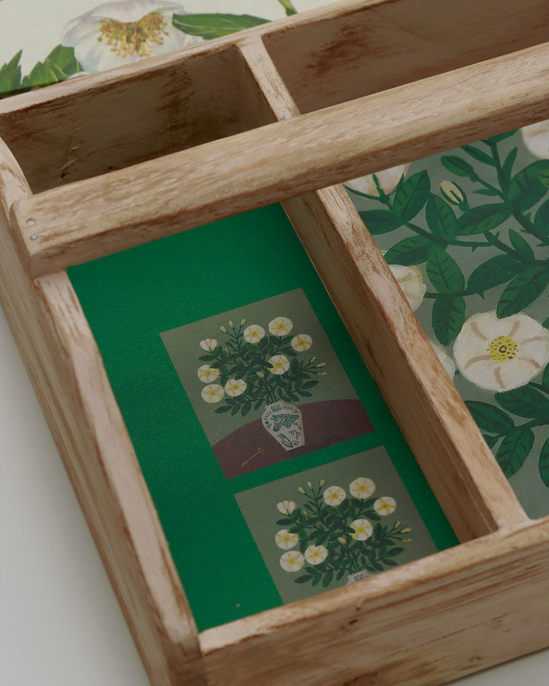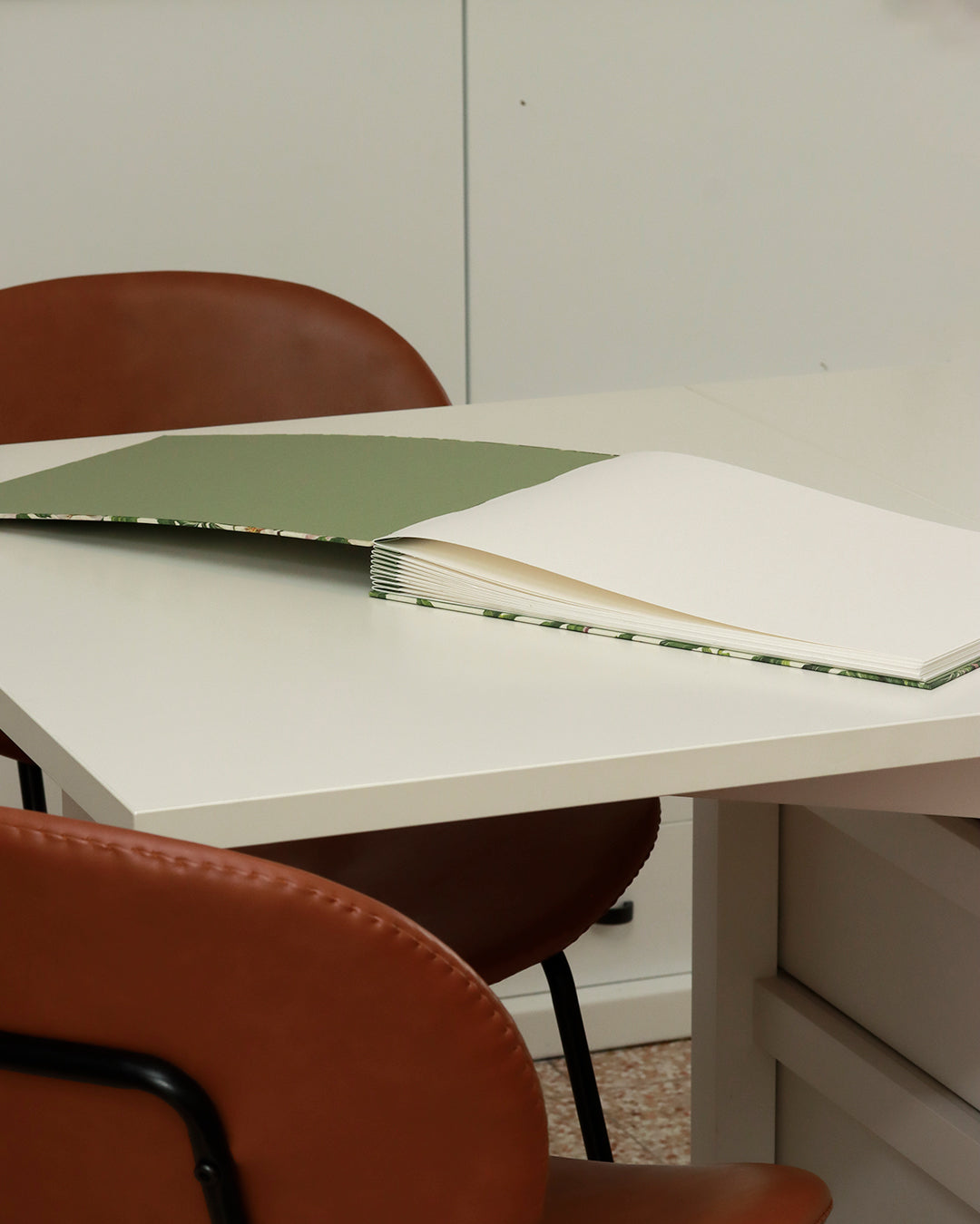 Un quaderno che celebra la bellezza delle carte e il piacere che si prova a prestare attenzione alla natura che ci circonda, a osservare (e, perché no, anche a realizzare) disegni e stampe di piante e fiori con estrema cura nei dettagli e a tutto ciò che possono accompagnarci a generare.