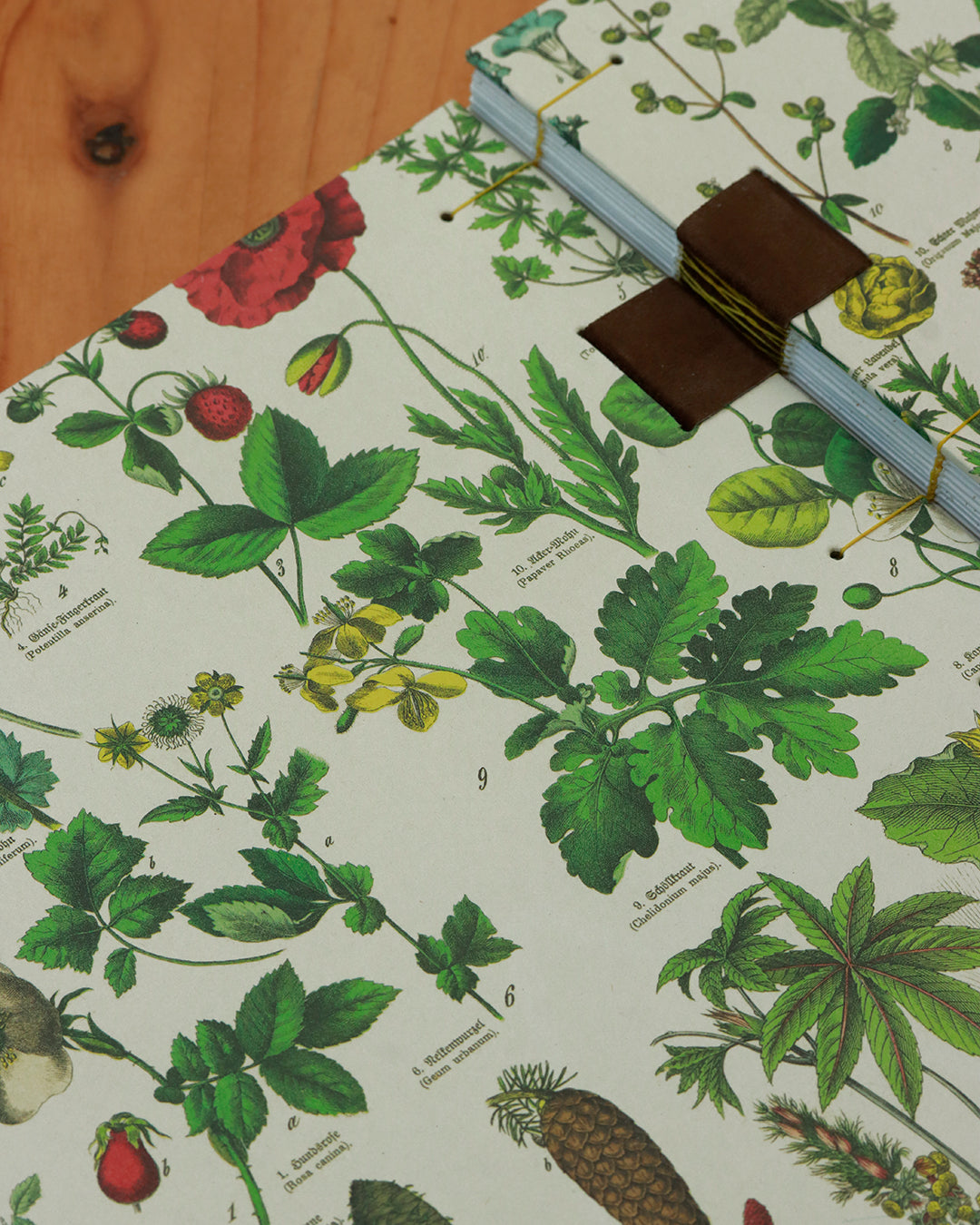 che presenta illustrazioni botaniche accompagnate dai nomi latini delle piante. Le specie rappresentate su ogni quaderno della famiglia sono diverse, così come il ritmo visivo delle illustrazioni e quindi il colore del filo scelto per la cucitura.